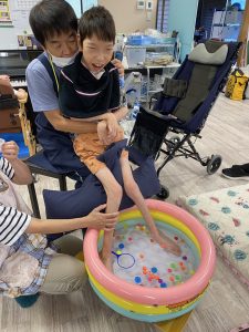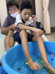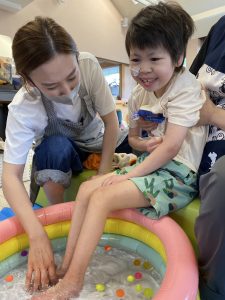 そして…夏祭りのスーパーボールすくいの後は、水にも触りたい!!