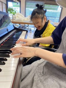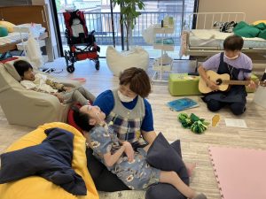 昼食の後は、音楽演奏を聞いたり、好きな遊びを楽しんだり
