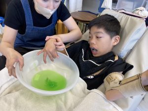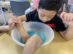 一緒にシャカシャカと振ったり揉んだり、「まだかな?できたかな??もうちょっとかな??」