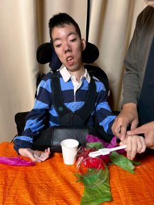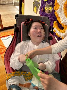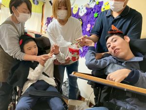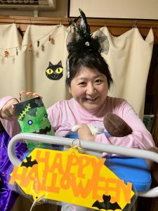 声を出すことが難しい方はカードを使って思いを伝え、それぞれの方法でハロウィンを楽しみました。