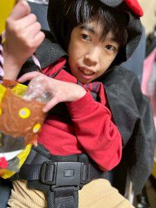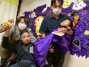 イベント当日には、仮装し職員と一緒に「トリック・オア・トリート!」の声かけでお菓子をもらいました。