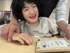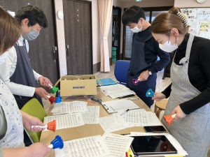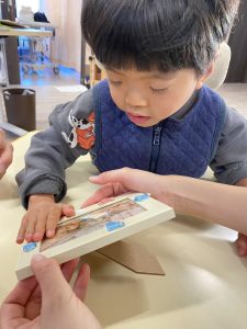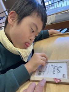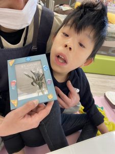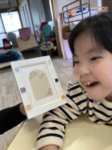 写真立ては、フレームやタイルの形、色、一人ずつ利用者さんと相談しながら