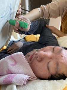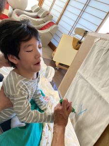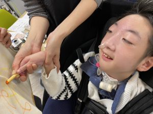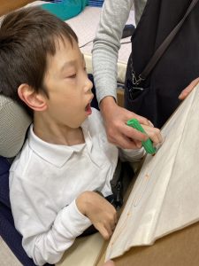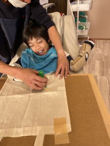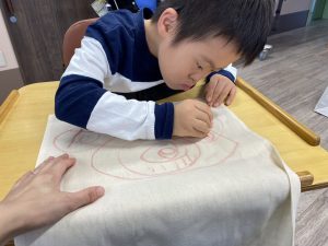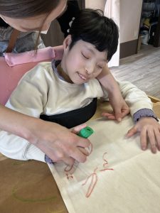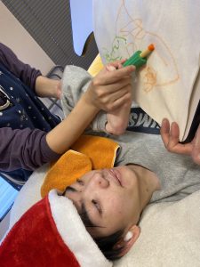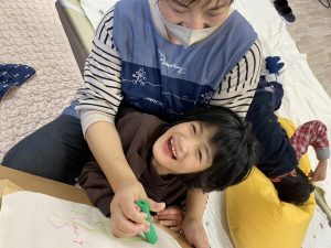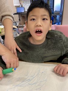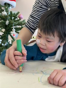 クレヨンを持ってスタッフと一緒に自由に描いていきます🧑🎨