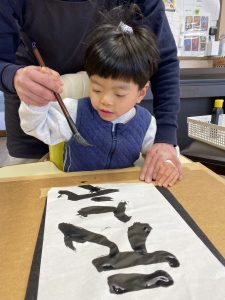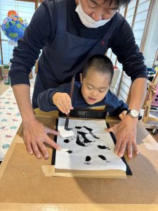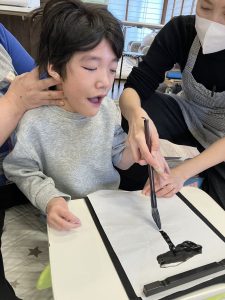 好きな事、物などを半紙いっぱいに筆を走らせました☺️