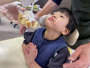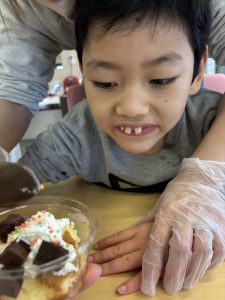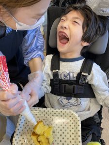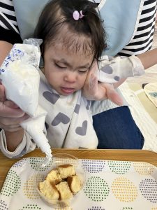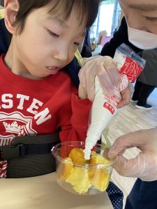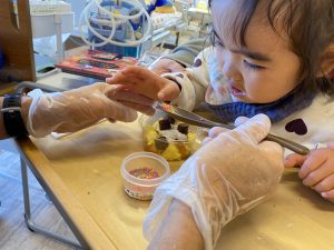 楽しい雰囲気の中、スタッフと一緒に絞り袋をギュッギュと握ってデコレーション😆💕
