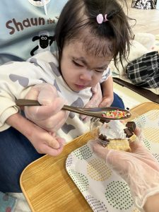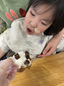 ハートやお星さまのカラフルなチョコレートもスプーンでトッピング☺️